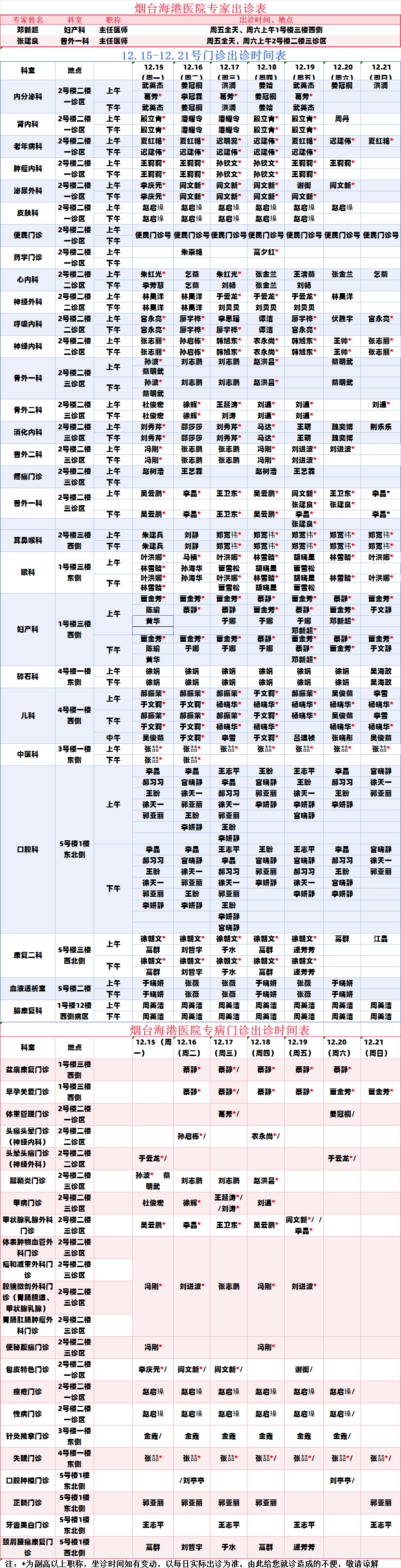 门诊排班表